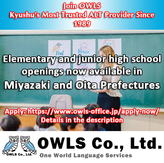 OWLS Co., Ltd., the longest-running and largest ALT provider in the Kyushu region, has been making the working in Japan dream a reality for teachers from around the world since 1989. As the only ALT company based in Kyushu, we know the region, its schools, and its communities better than anyone.